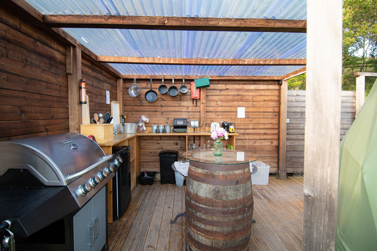 Fully equipped with a toaster, coffee maker, kettle, fridge, and all the utensils you need, our outdoor kitchens have everything you need to whip up a feast. So what are you waiting for? Come and experience the convenience of glamping today!